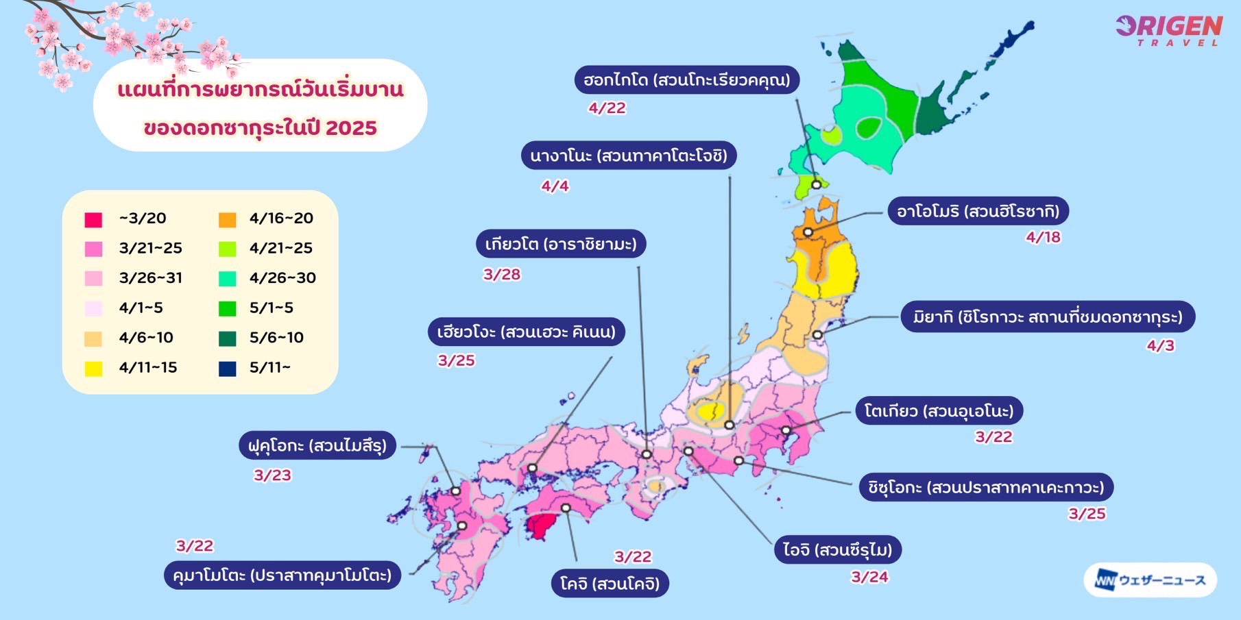 พยากรณ์ซากุระบานประจำปี 2025 ที่ญี่ปุ่น